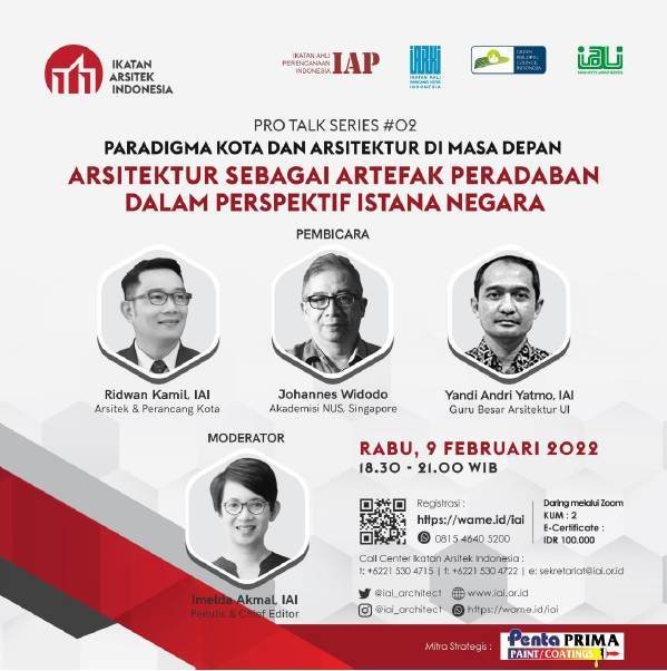 Berita-Properti.com – Ikatan Arsitek Indonesia (IAI) mengadakan diskusi webinar Pro Talk Series #02 mengenai Paradigma kota dan arsitektur di masa depan, dalam konteks desain arsitektur sebagai artefak peradaban, khususnya istana negara.