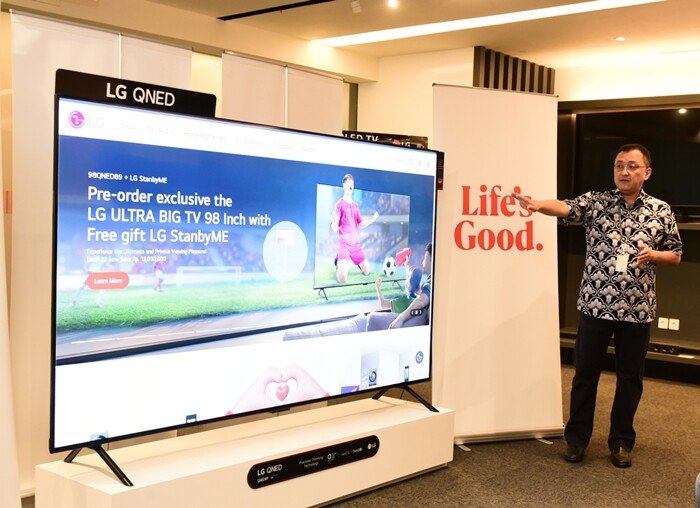 Seharga, Rp 62,999,000, LG memberikan penawaran istimewa. Untuk setiap pembelian 1 unit LG 98QNED98, pembeli akan mendapatkan 1 unit TV LG StanbyME. Disamping itu, LG juga mempersiapkan program Pre Order menarik lainnya melalui website jaringan toko Hartono Elektronik dan Electronic City.