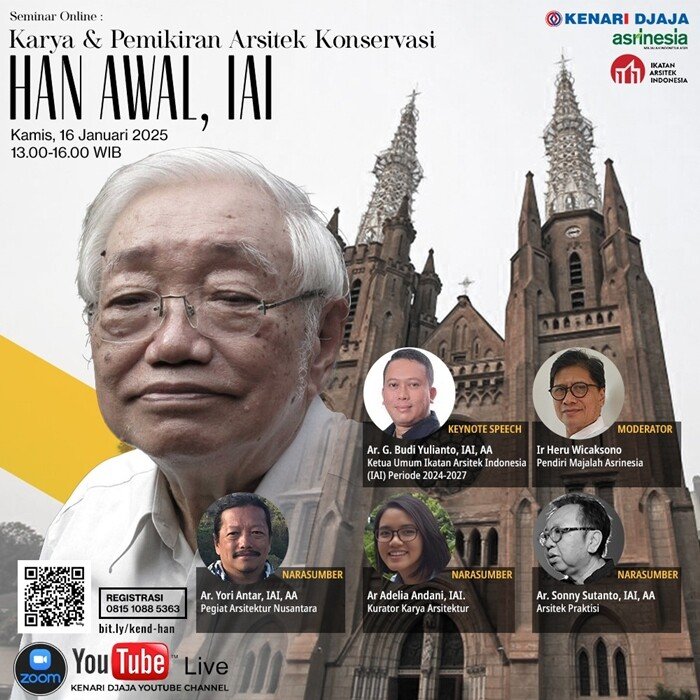 Majalah ASRINESIA (d/h. Majalah ASRI) bersama KENARI DJAJA yang sudah lama mengenal sosok Han Awal tertarik menampilkannya melalui seminar virtual berupa  Pemikiran & Karya Arsitek Konservasi – Han Awal, IAI.